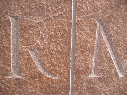 Hand-carved v-sunk letters in stone are becoming more and more rare in modern memorial work. Modern stencil guided sand-engraving has become the standard technique employed on 99% of orders today unless the customer desires to duplicate an existing style already present on their cemetery lot.