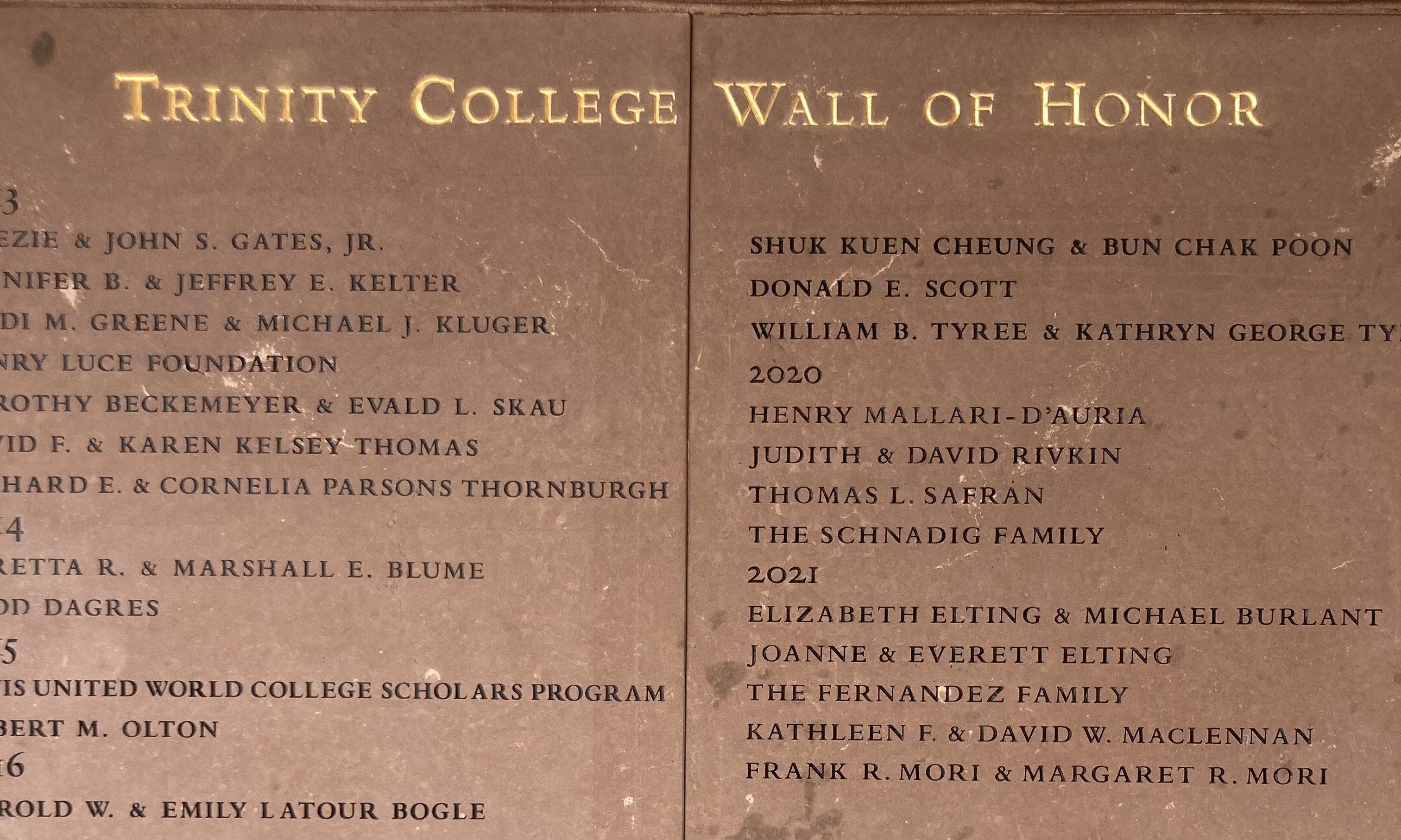 Beij, Williams & Zito have executed many such elegant inscriptions in several other areas of the Trinity College grounds as well as Avon Old Farms School, Loomis Chaffee School, Miss Porter’s School, Westminster School, Kingswood Oxford School and Renbrook School.